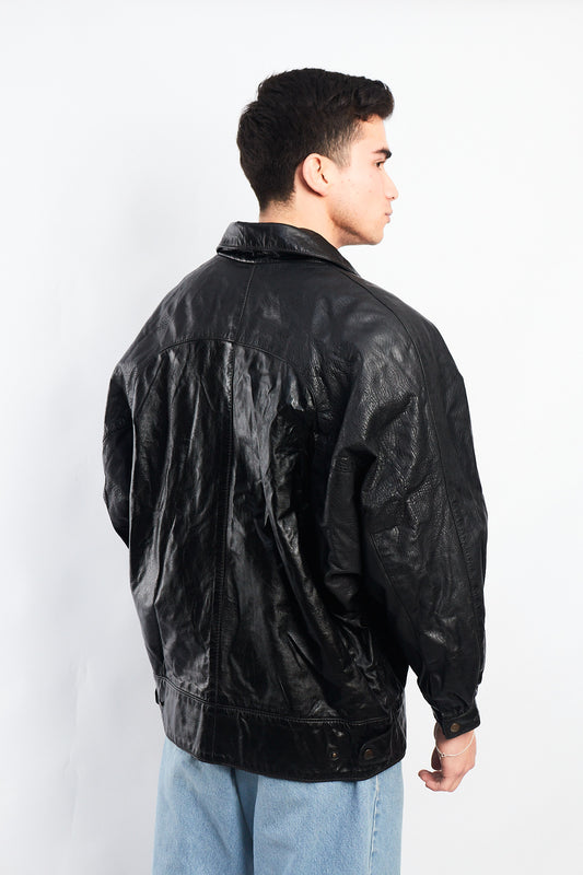 1990 Vintage Waves Print Leather Bomber Jacket (M/L)