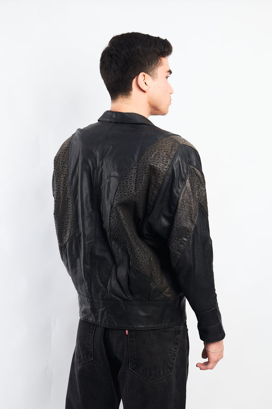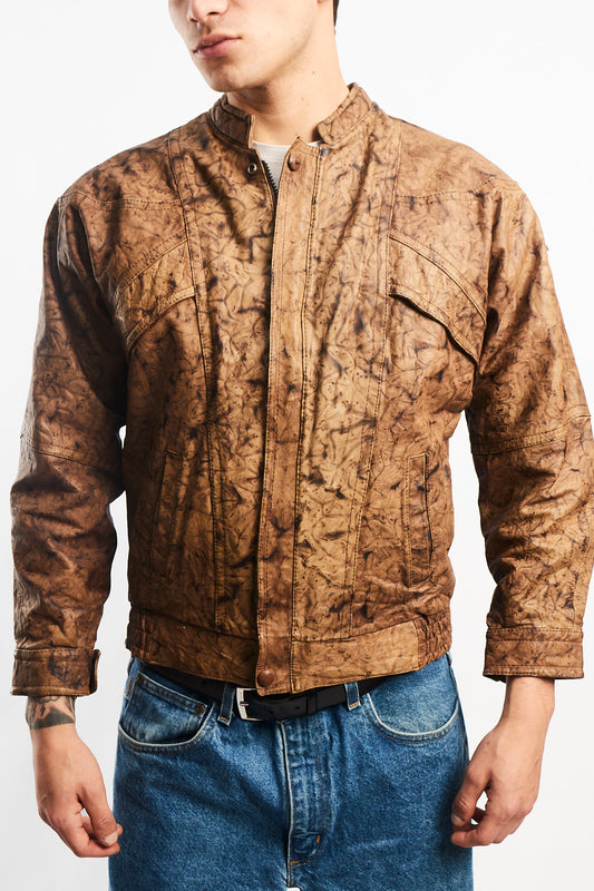1993 Vintage Renzo Costa Animal Print Leather Bomber Jacket (S/M)