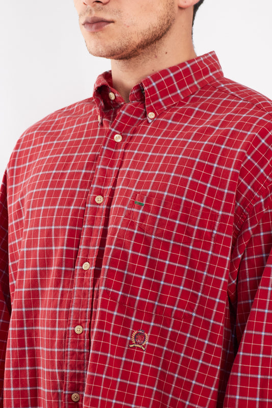 1990 Vintage Tommy Lion Emblem Plaid Shirt (L/XL)