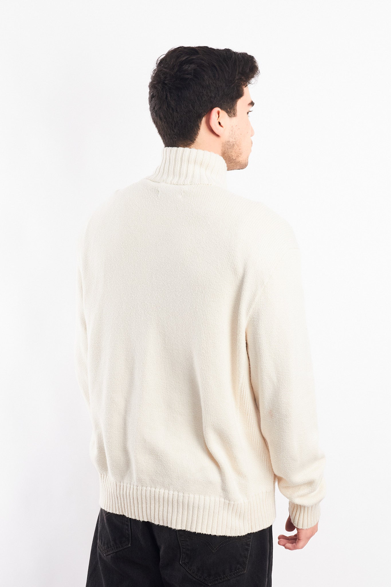 Hecho de 100% algodón pesado. Color blanco con bordado Polo en el pecho. Cuenta con 2 bolsillos a los lados.