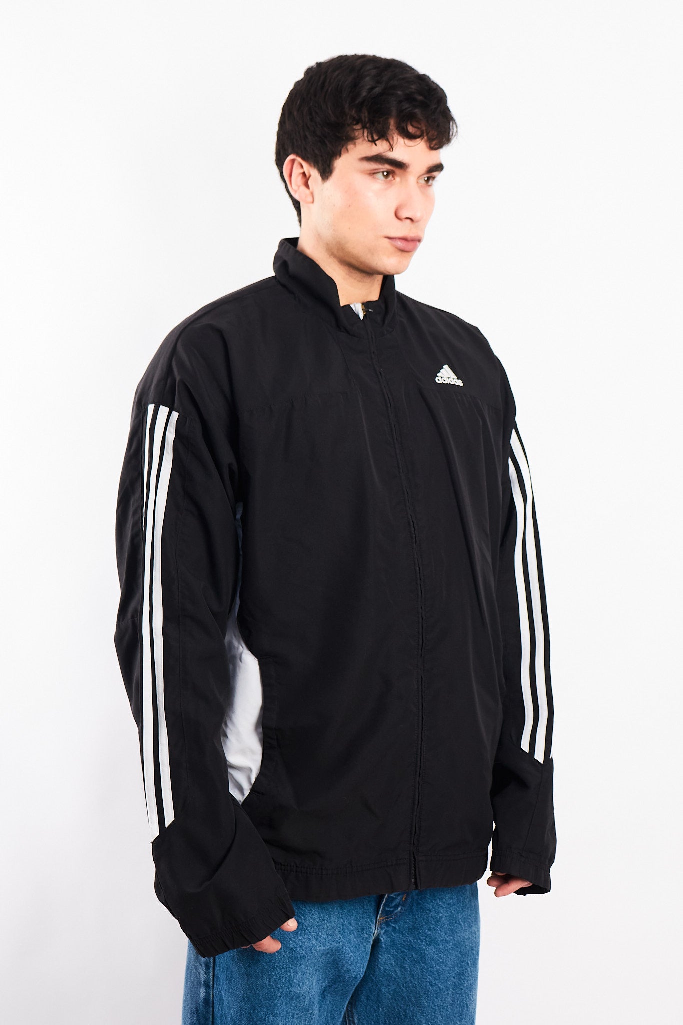 Hecho de 100% polyester. Color blanco con negro Adidas en el pecho. Tiene las 3 rayas en los brazos. Forro interno negro de mallas.