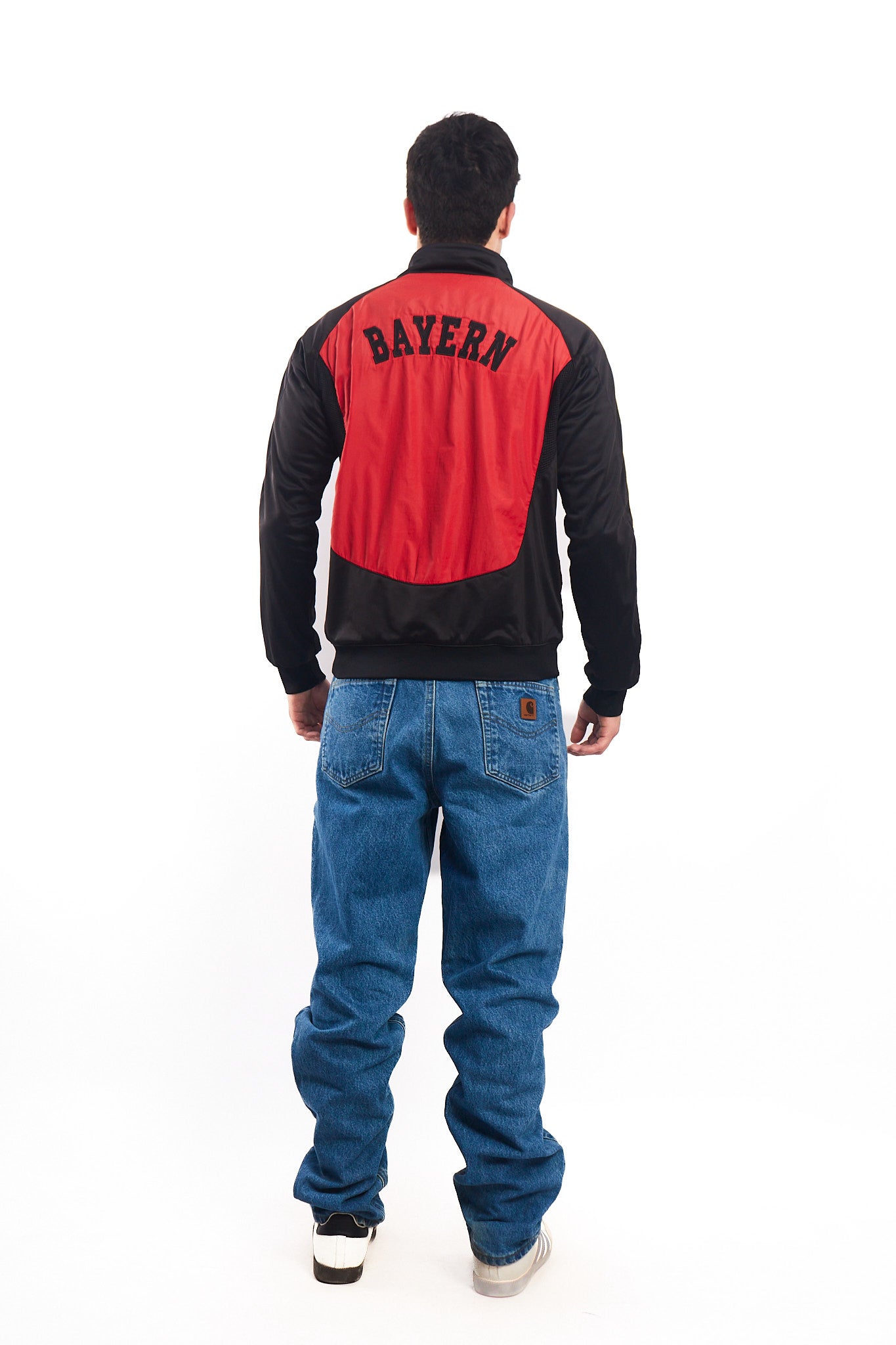 Hecho de 100% polyester. Color rojo y negro. Cuenta con bordado Bayern en el pecho y Adidas. En la espalda un bordado grande Bayern. Cuenta con 2 bolsillos externos, cierre con grabado Adidas y forro interno de mallas negro.