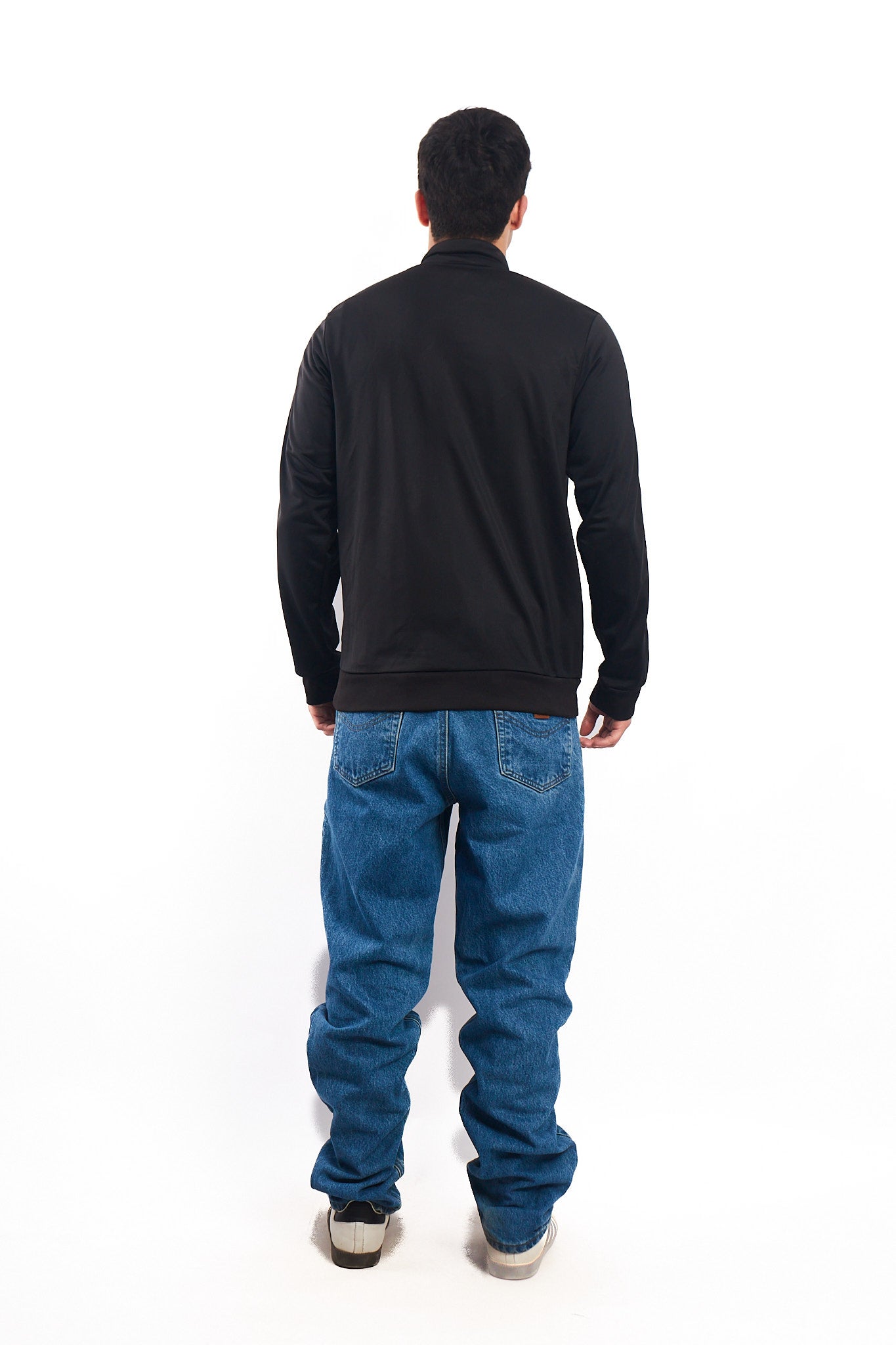 Hecho de 100% polyester. Color negro con franjas blancas. Cuenta con estampado Adidas en el pecho. Cuenta con 2 bolsillos .