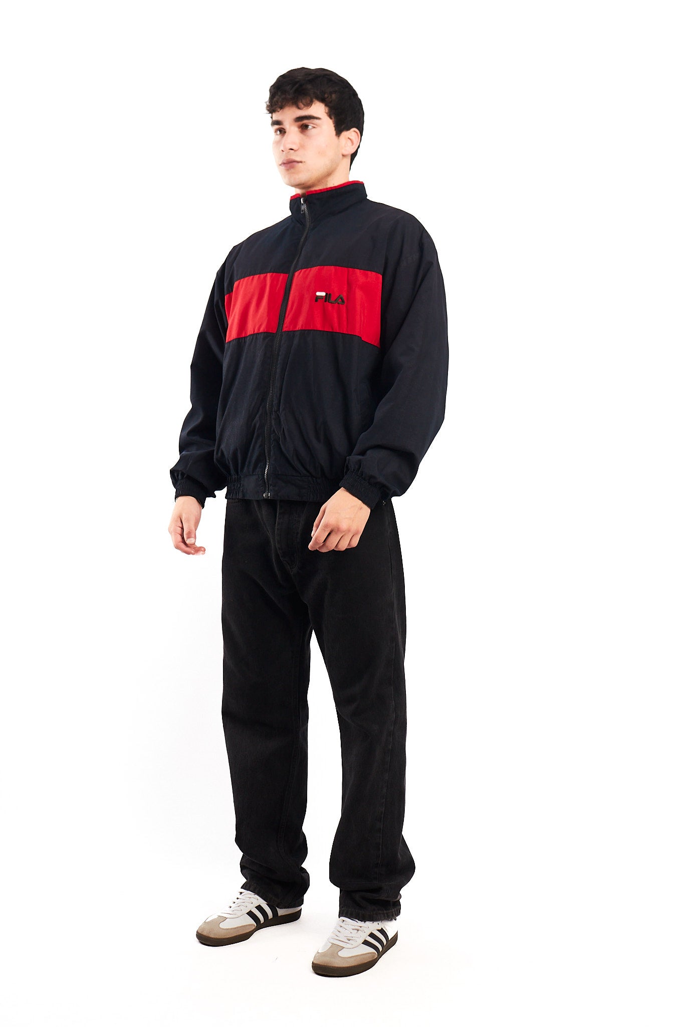 Hecho de 100% polyester. Color negro con franja roja. Cuenta con 2 bolsillos a los lados. Forro interno mallas en color blanco.