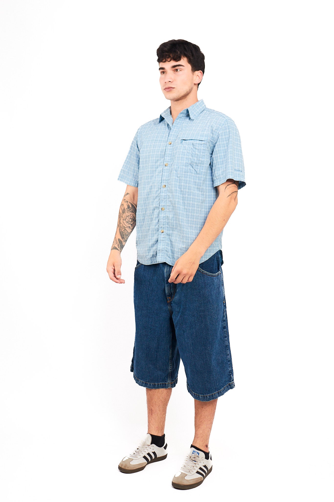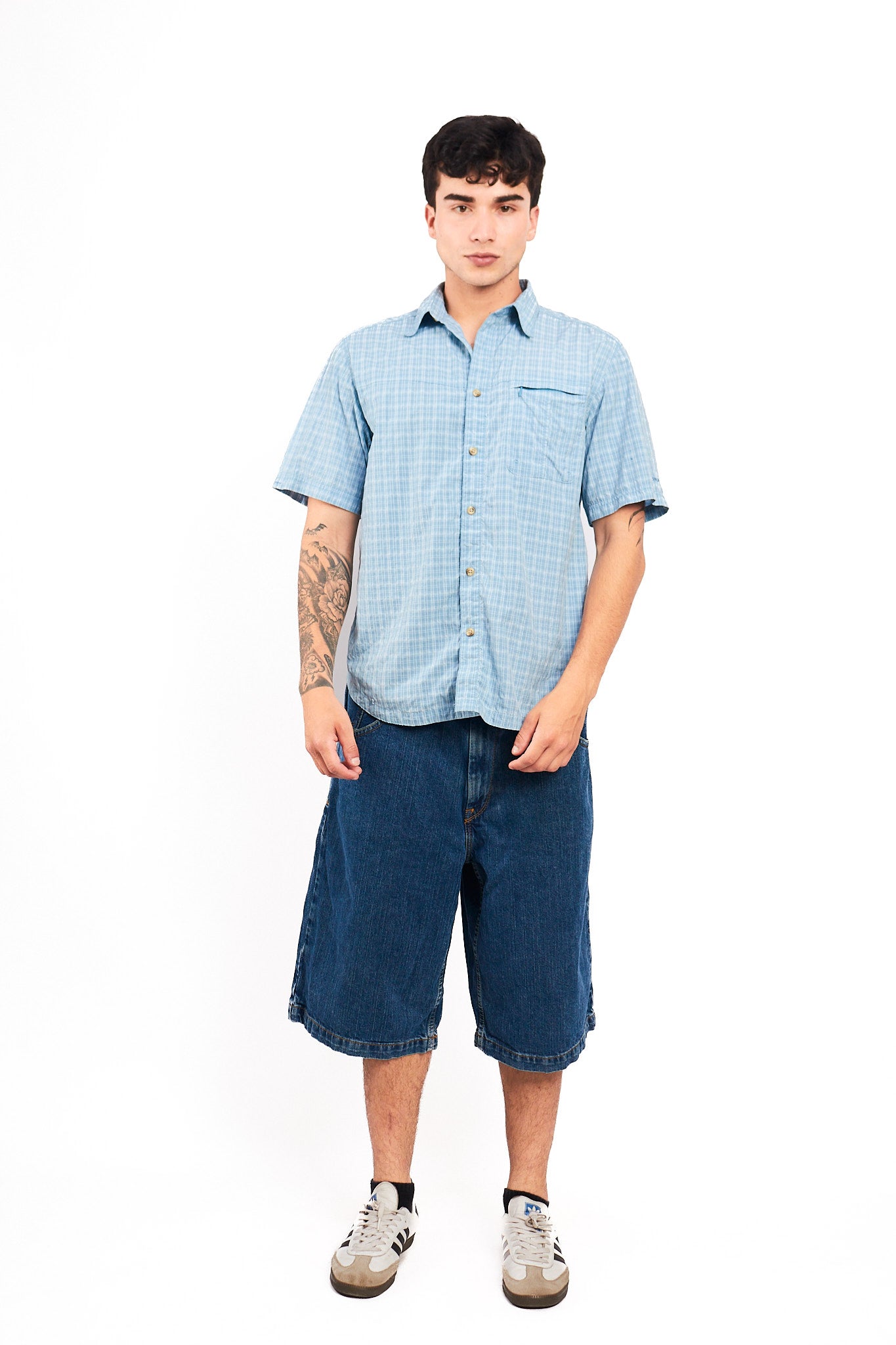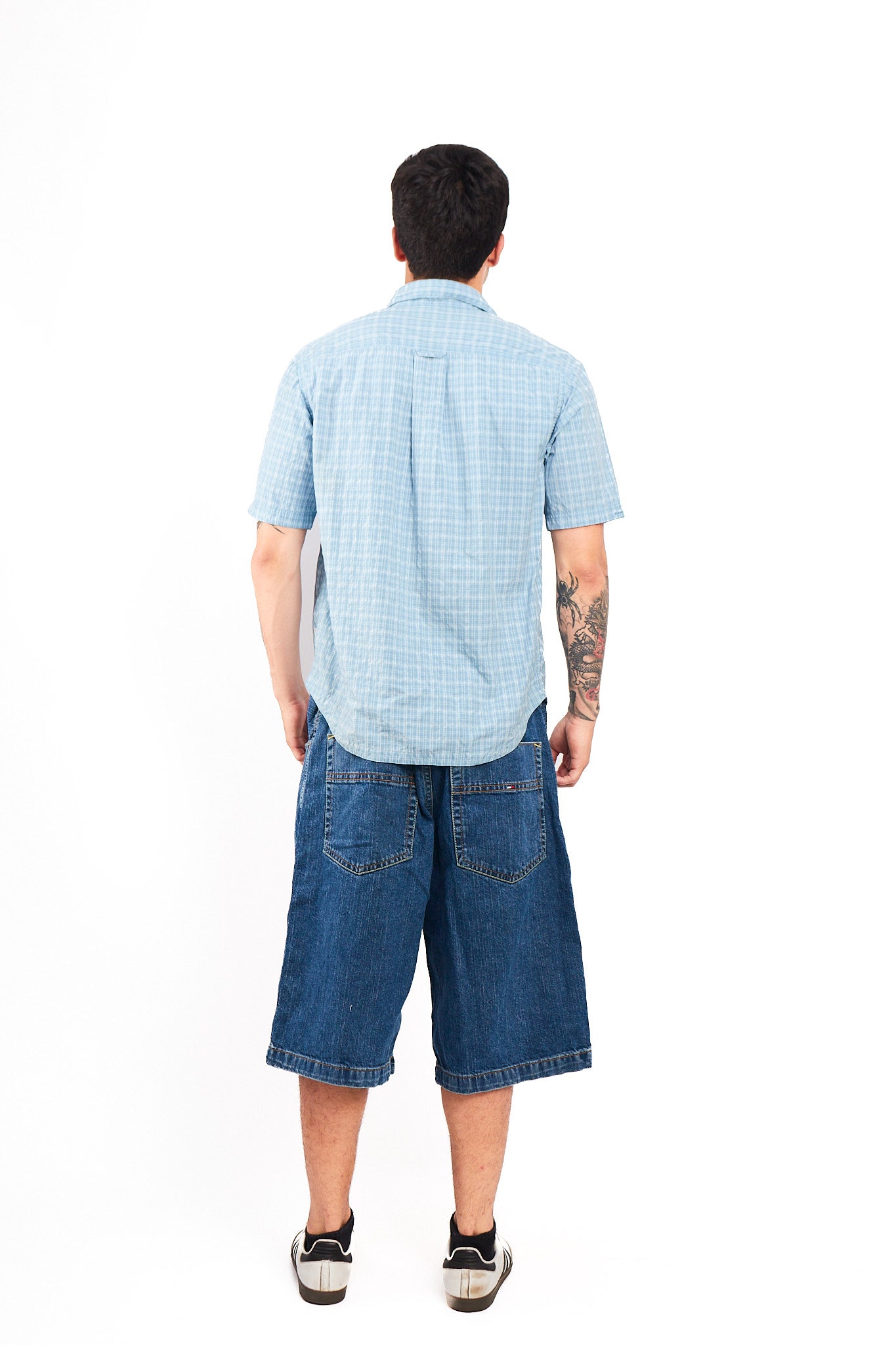 Diseño a cuadros vintage color celeste y blanco. Cuenta con un bolsillo delantero con cierre celeste. Tiene una etiqueta de la marca por el lado izquierdo de la prenda.