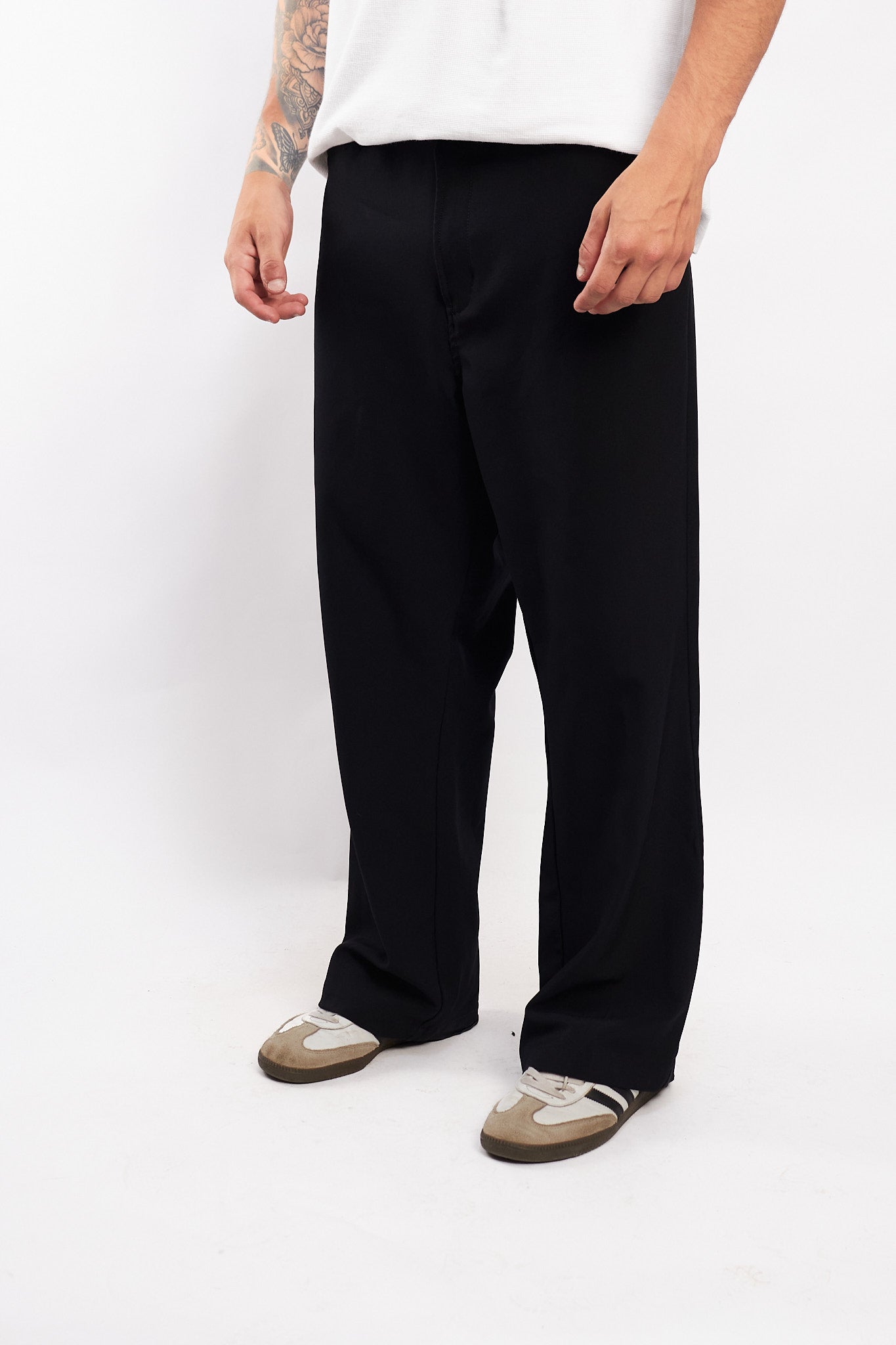 Hecho de 92% poliéster y 8% elastano. Pantalón de vestir color negro tipo sastre. Tiene etiqueta Calvin Klein Jeans sobre el bolsillo trasero. Se acomoda muy bien al cuerpo.