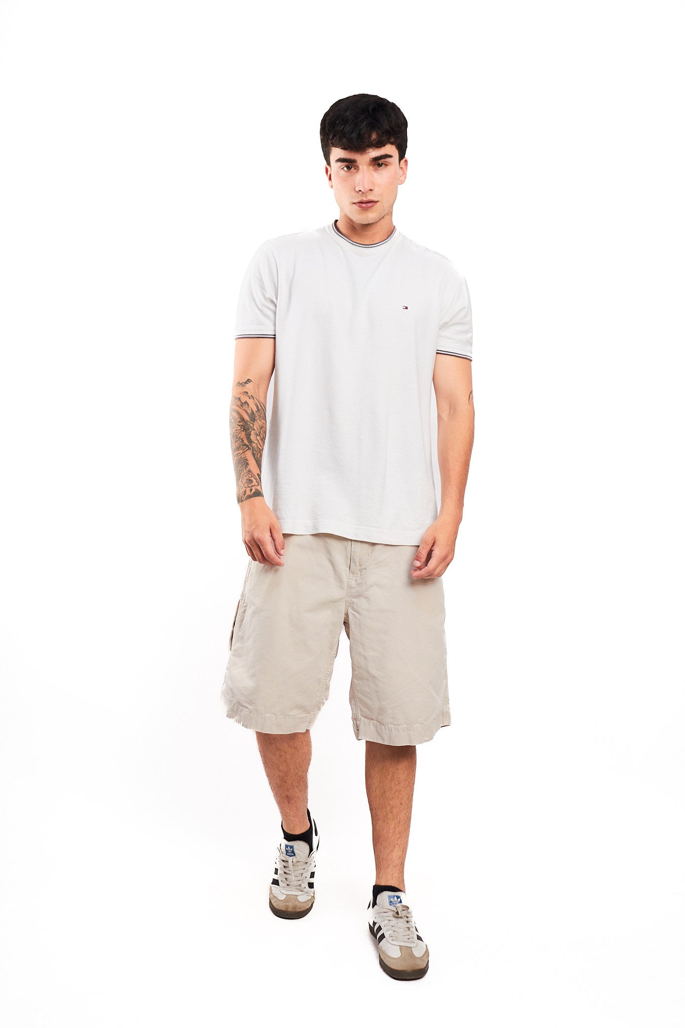 El corte del short es recto y suelto tipo baggy. Es cómodo para su uso, super combinable.