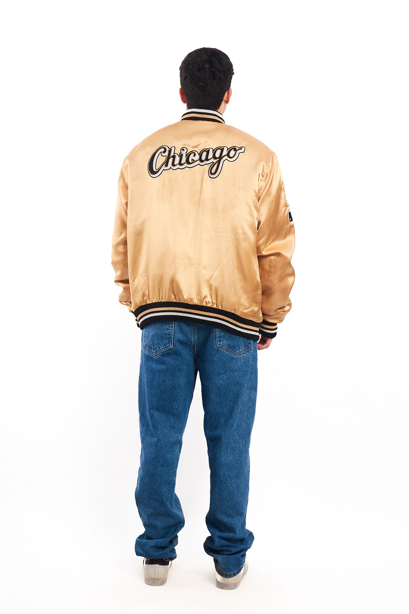 Prenda hecha de 100% polyester. Color dorado satinado. Cuenta con bordado White Sox en el pecho, además un bordado en los brazos y espalda. Forro interno dorado acolchado con bolsillo interior.