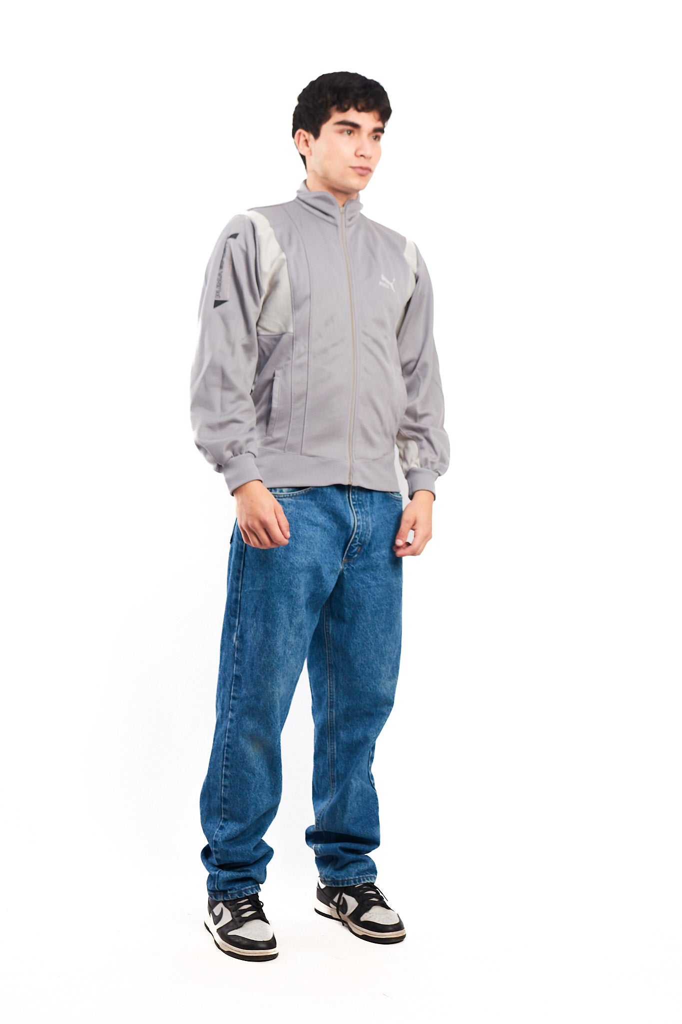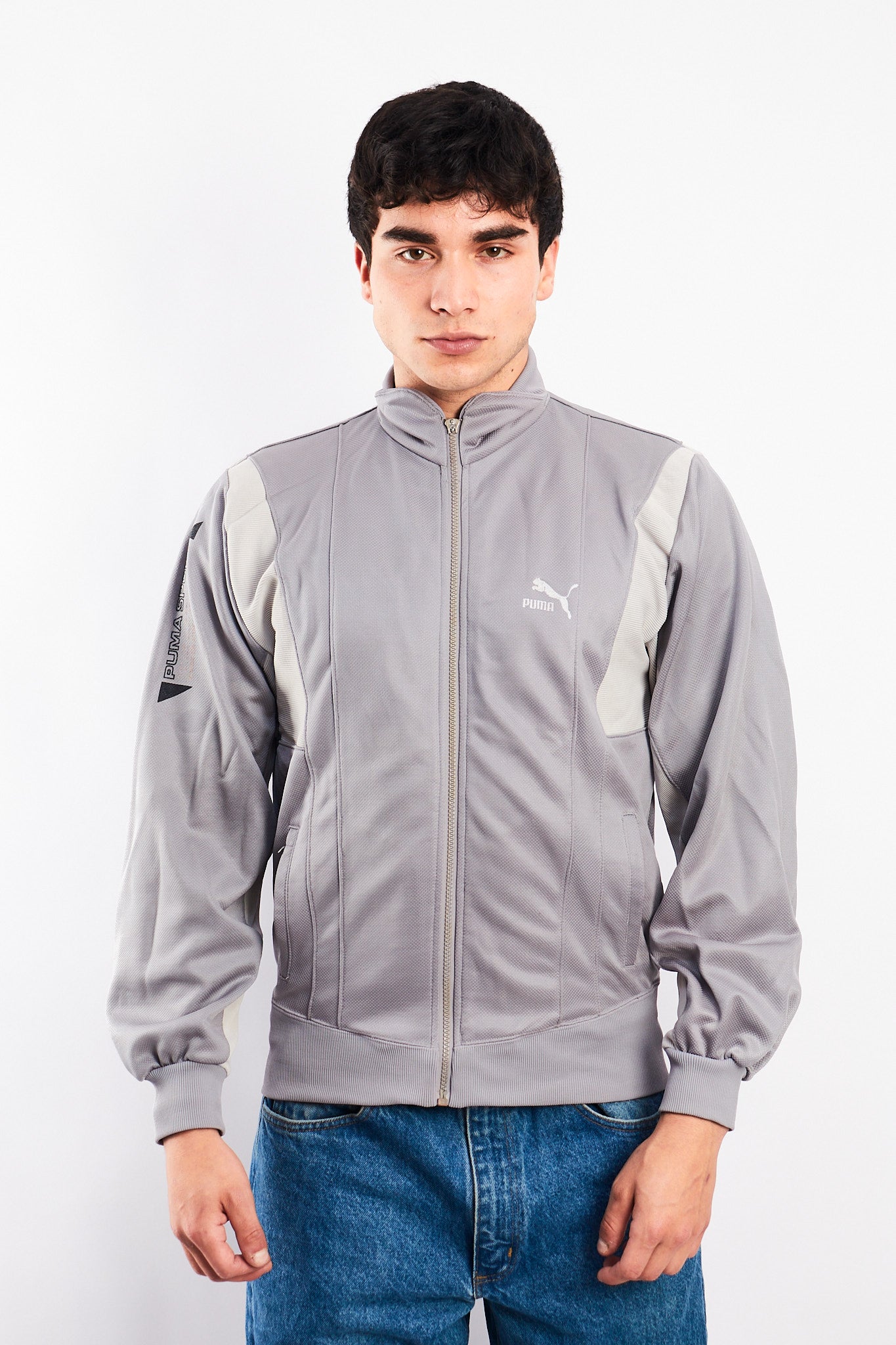 Hecho de 100% polyester. Color gris con blanco. Cuenta con bordado Puma y tiene un estampado Puma Sport en el brazo. Cuenta con 2 bolsillos