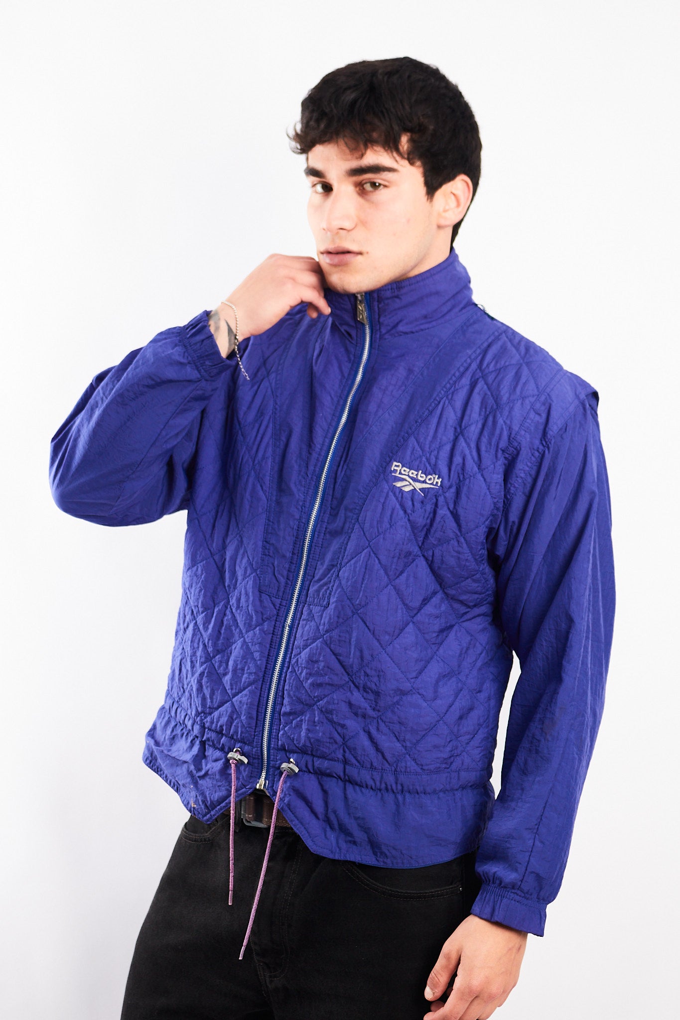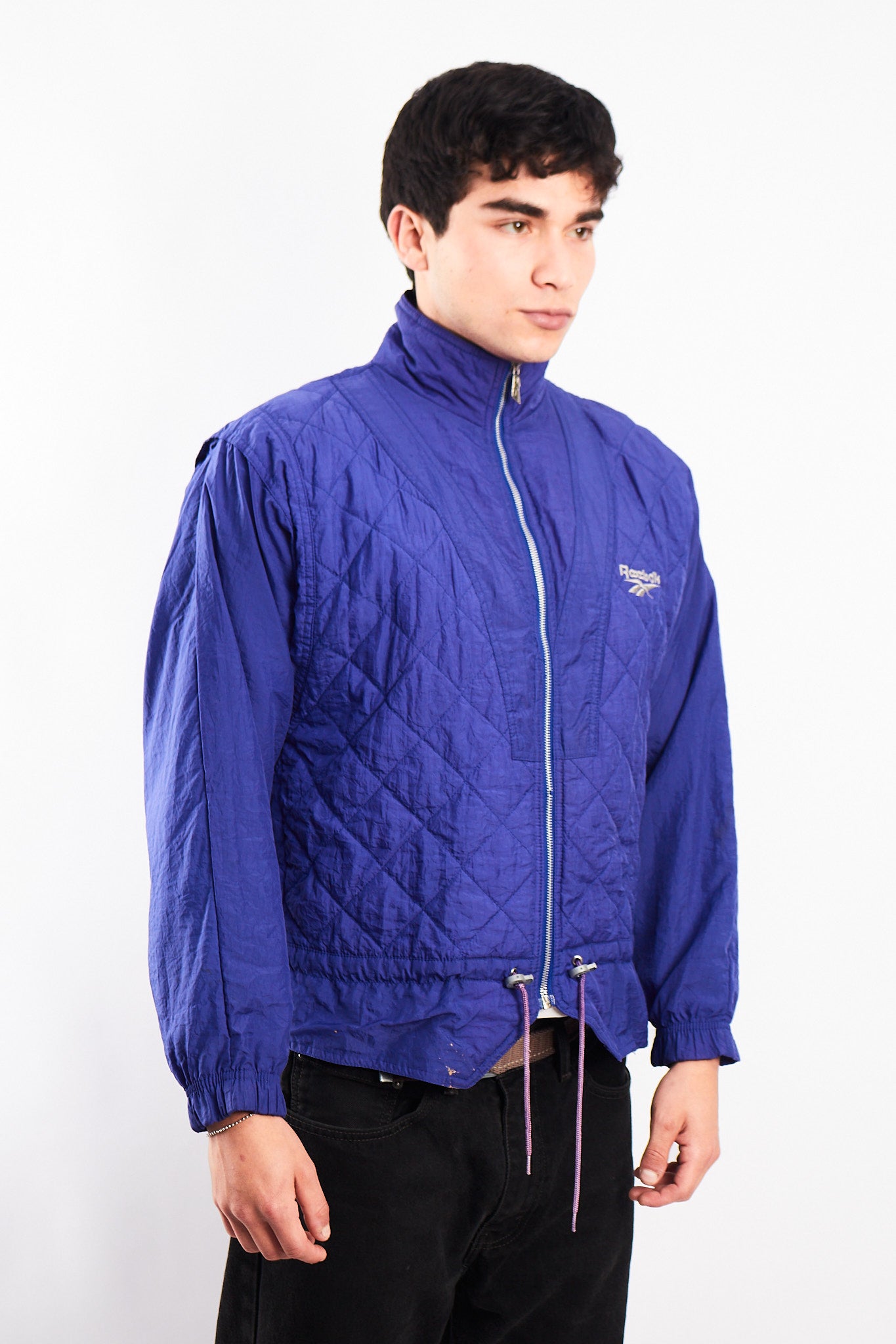 Hecho de 100% polyester acolchado. Color purpura con bordado Reebok y cierre con grabado Reebok. Cuenta con forro azul