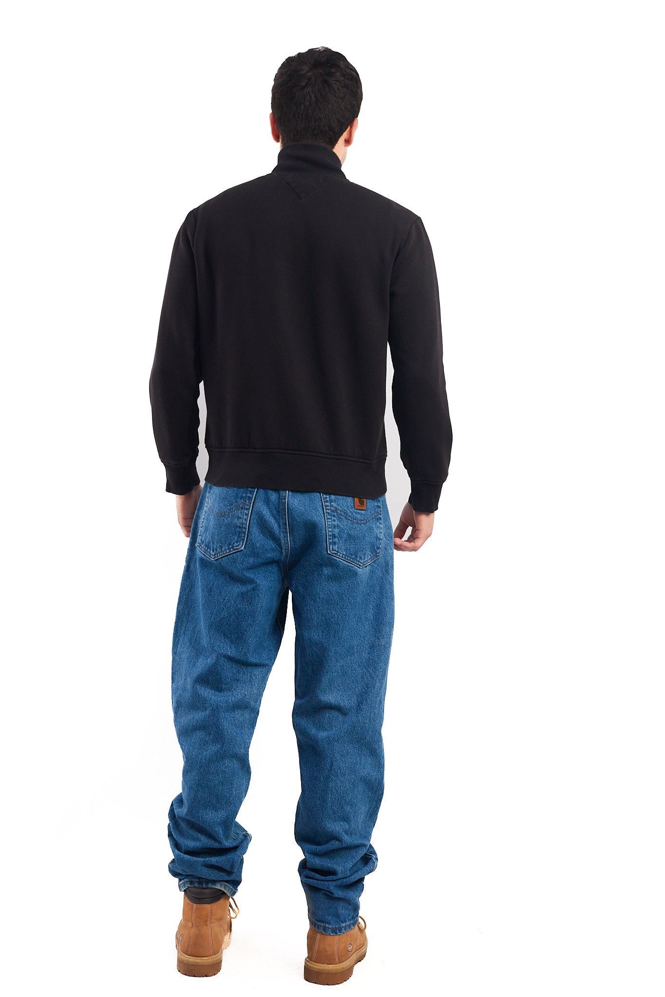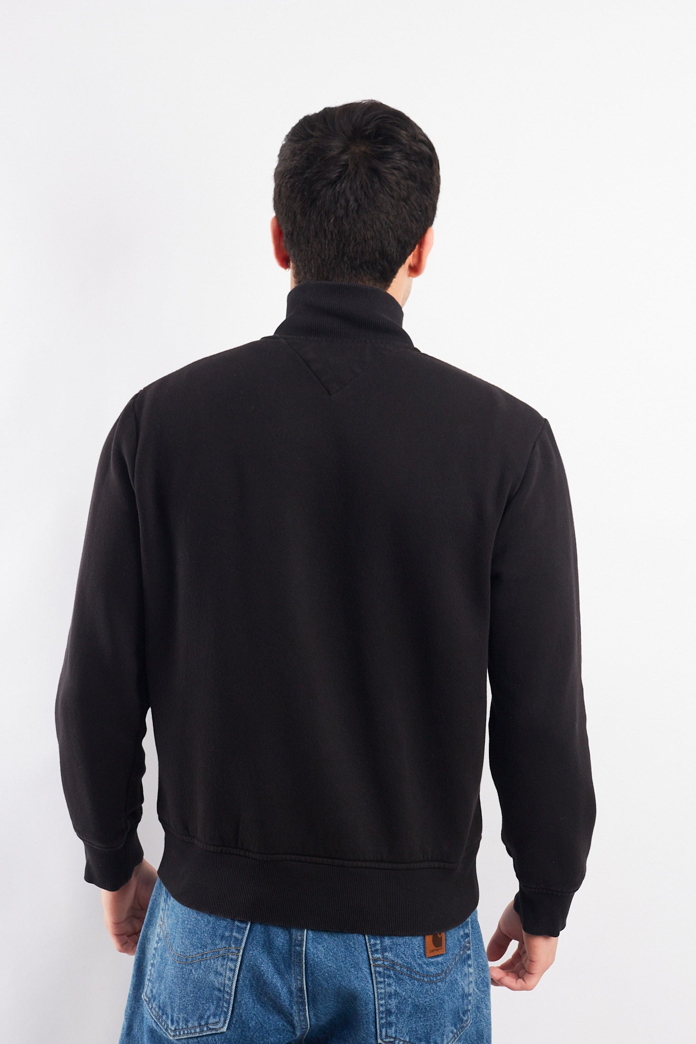 Hecho de 70% algodón y 30% polyester. Color negro con estampado Hilfiger de la bandera y un bordado Tommy en la manga