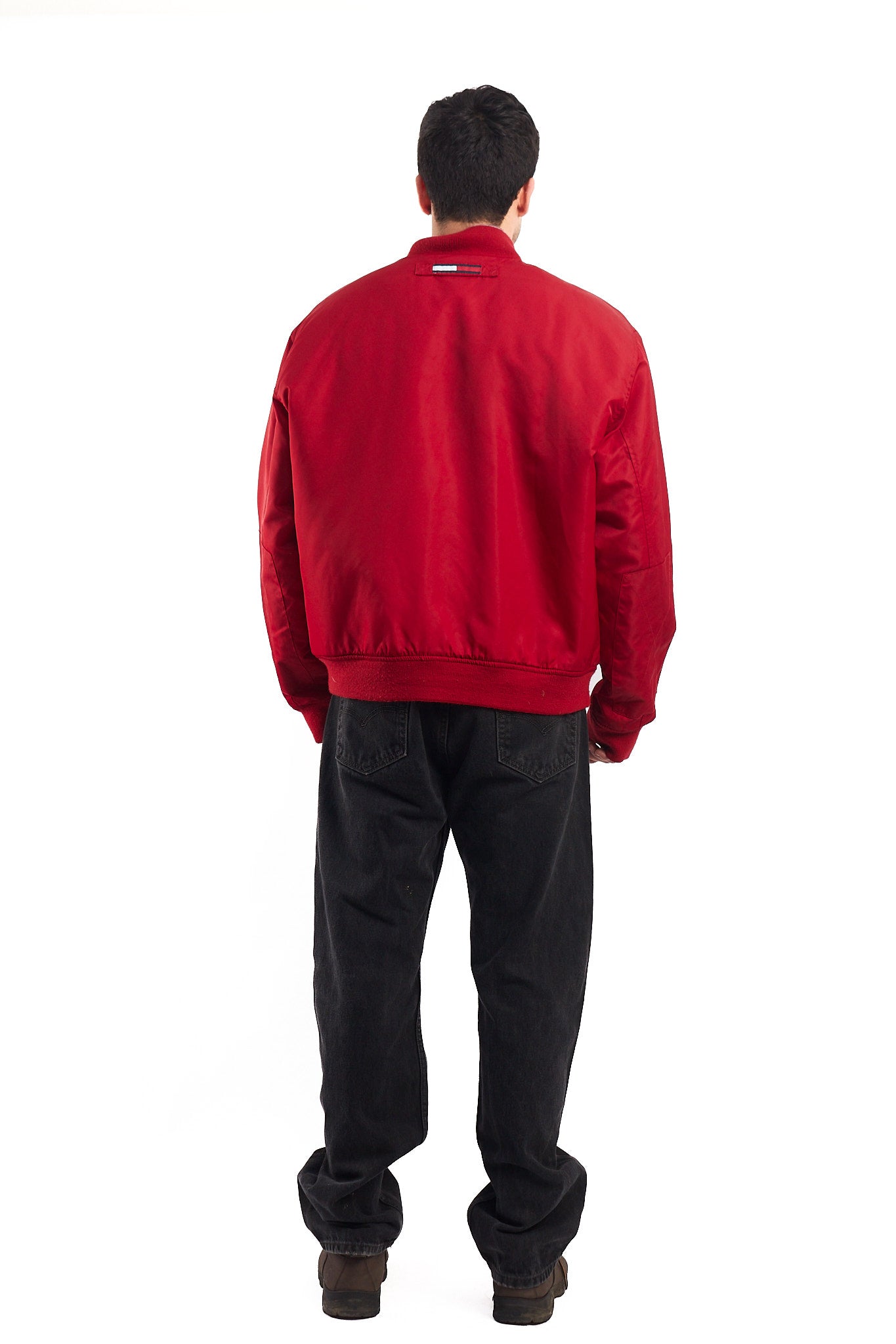 Hecho de 100% nylon. Color rojo con bordado Tommy Jeans en el pecho , parche Tommy en un brazo y una etiqueta Tommy en la espalda. Broches plateados con grabado Tommy y diseño tipo aviadora. Cuenta con forro interno color azul marino y tiene 2 bolsillos externos y uno interno.