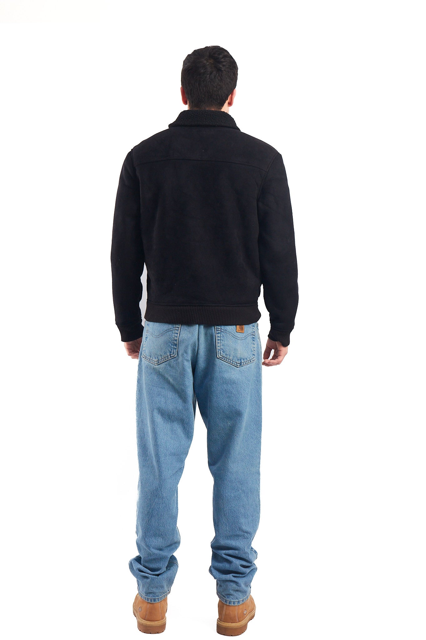 Hecho de 100% polyester con una textura tipo cuero. Color negro con bolsillos tipo aviador . Su forro interno es de faux fur ( piel sintética) . Botones negros con grabado Tommy.