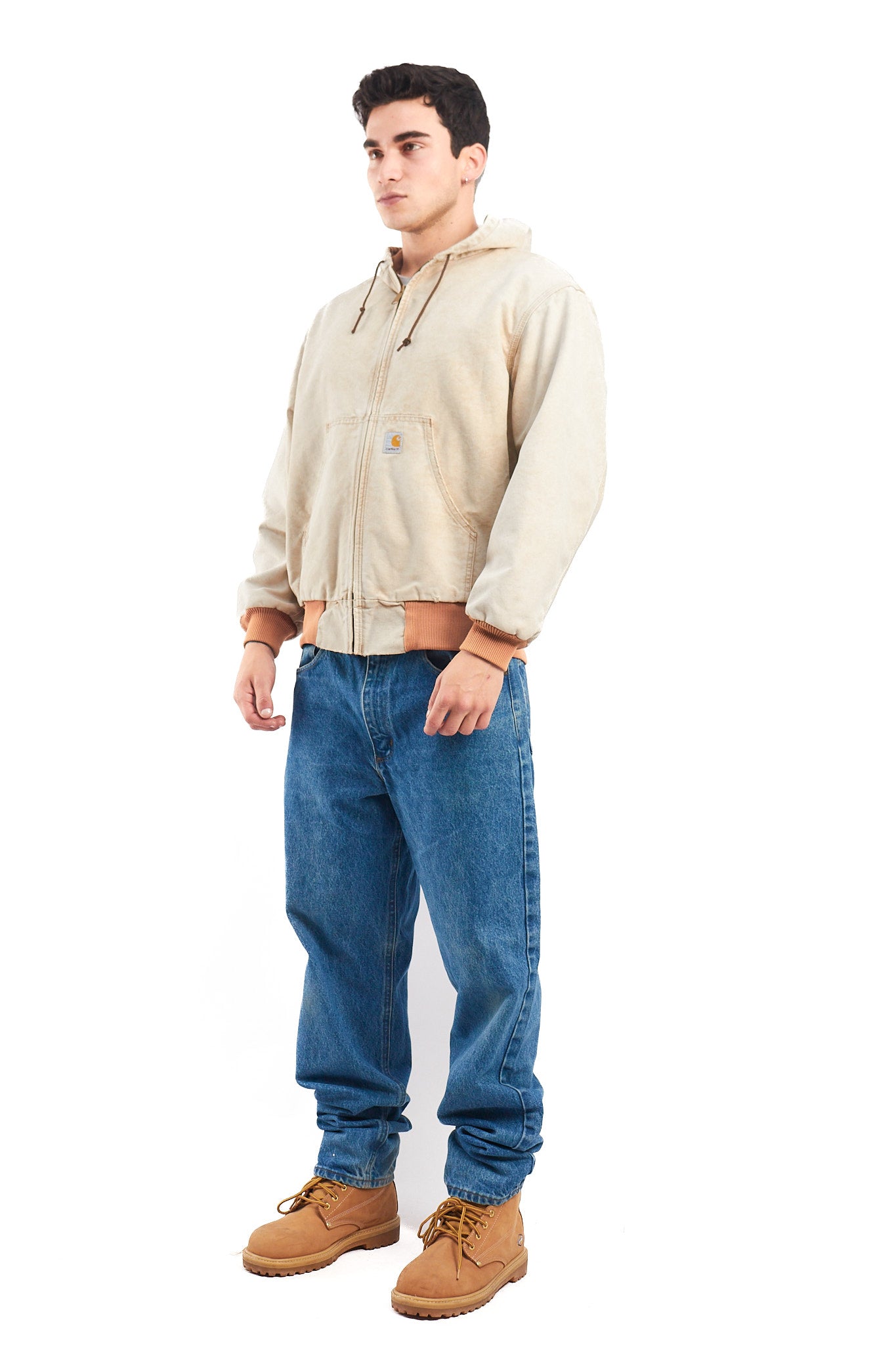 Prenda Vintage Carhartt hecho en 1998. Es una prenda que tiene muy poca información y el color beige con acabado acid-wash , en ese tiempo fue algo nuevo e hicieron pocos items , por algunos años, luego los descontinuaron.