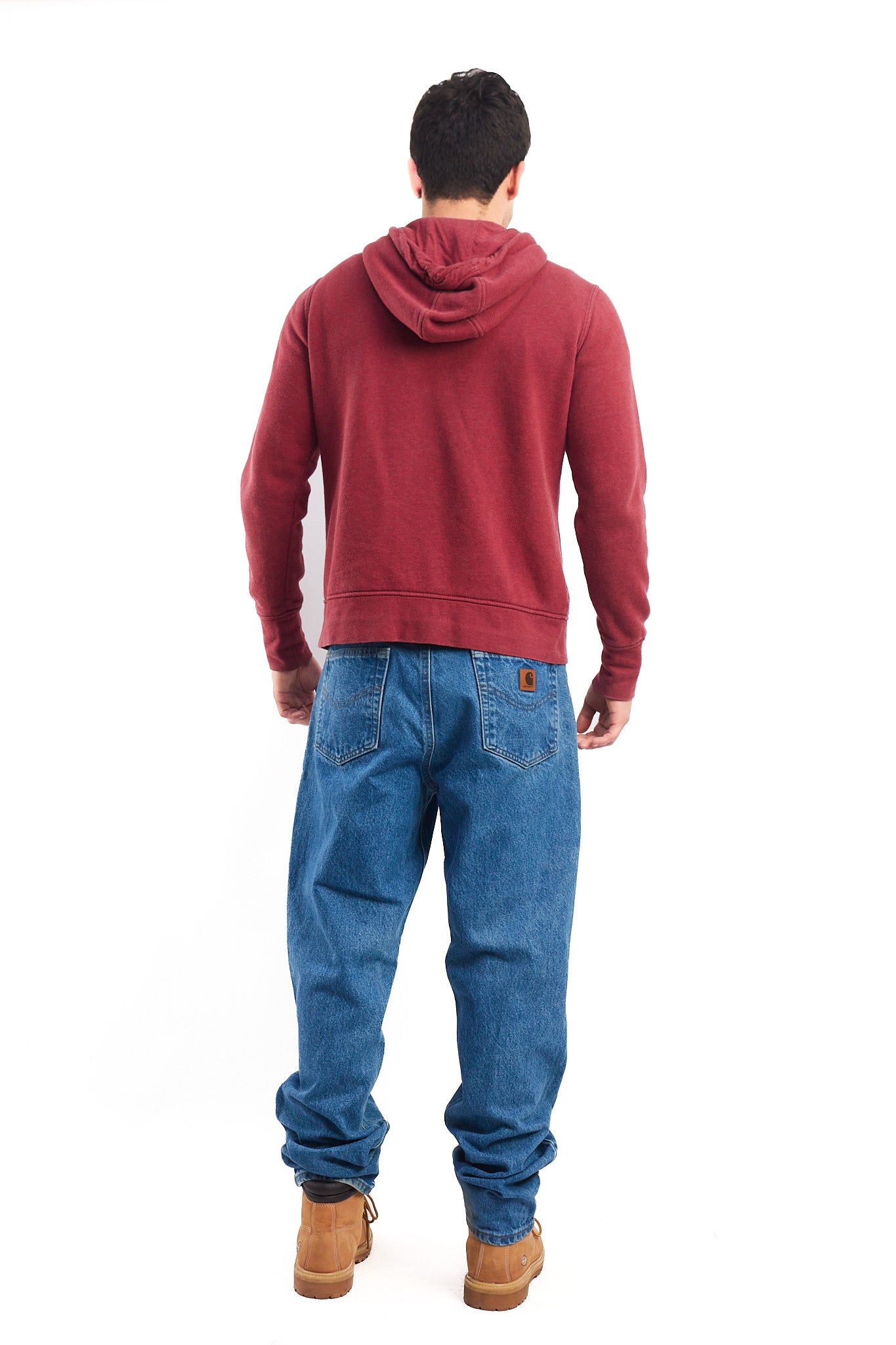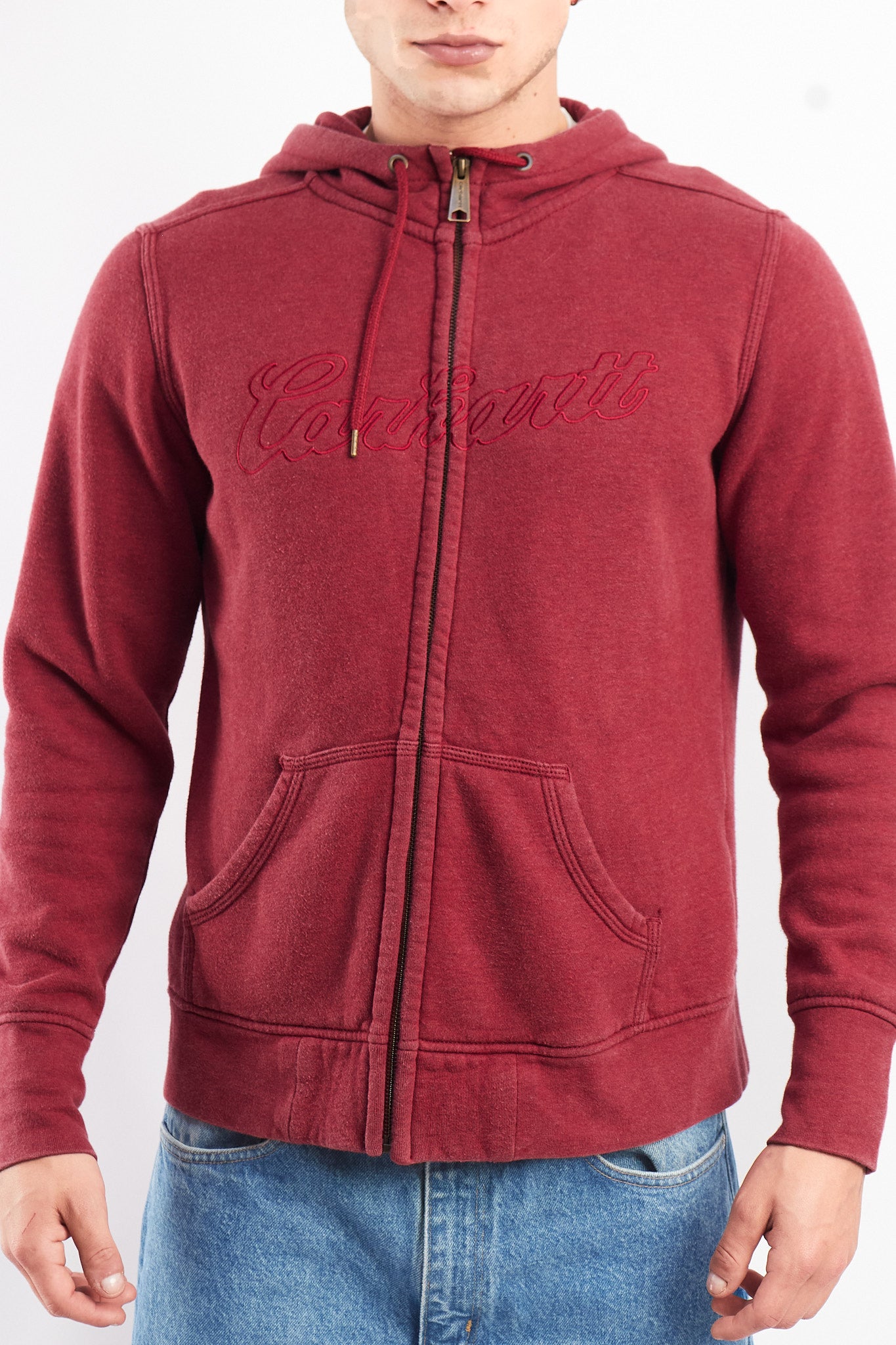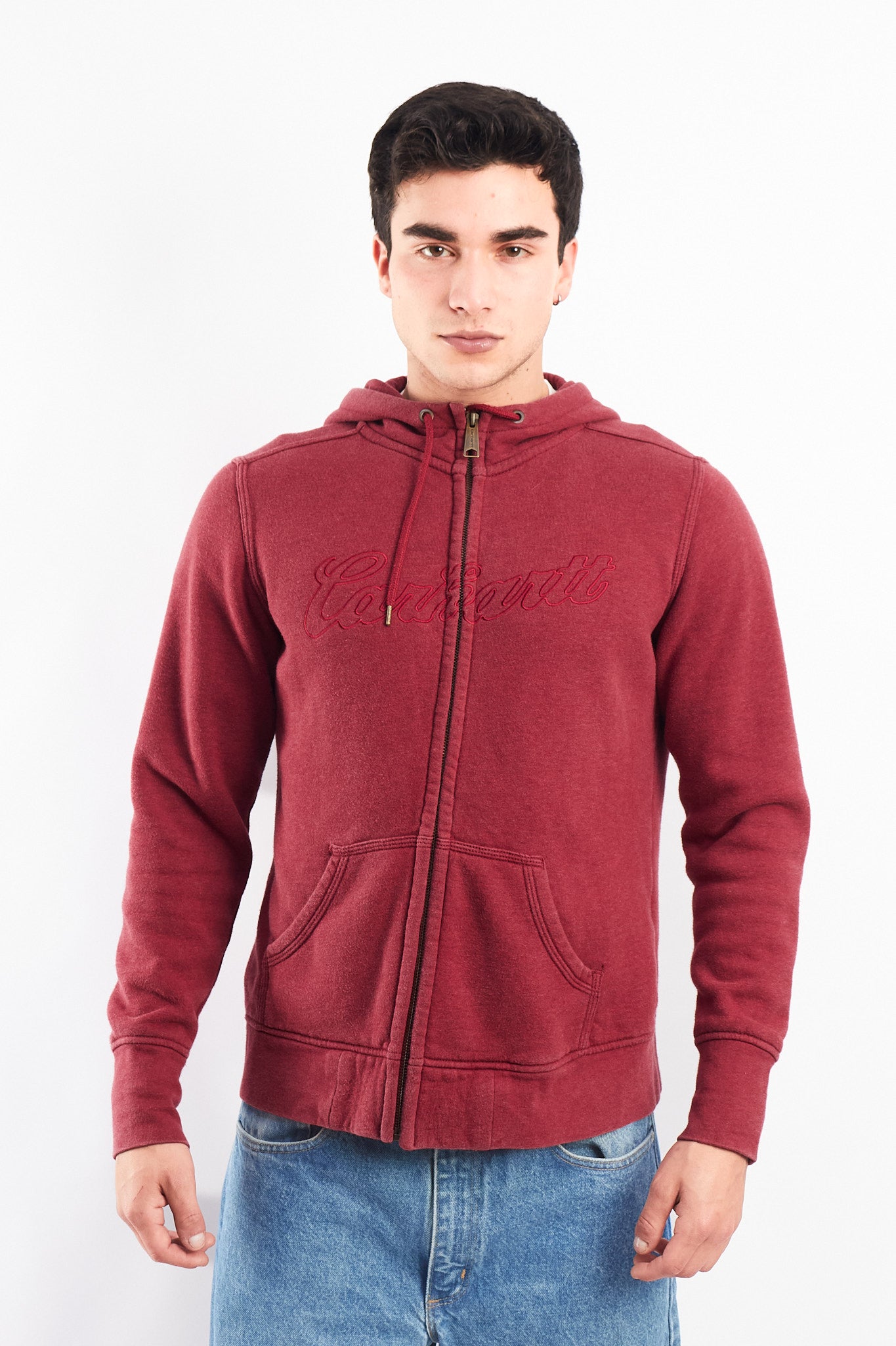 Hecho de 100% algodón grueso. Colorway Port o vino tinto. Cuenta con bordado Carhartt y 2 bolsillos.